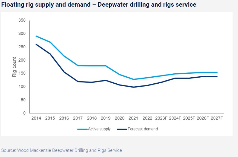 “Higher oil prices, the focus on energy security and deepwater’s emissions advantages have supported deepwater development and, to some extent, boosted exploration,” said Leslie Cook, principal analyst for Wood Mackenzie. “Active supply is now more in line with demand and rig cash flows are positive. We expect demand to continue to rise.”