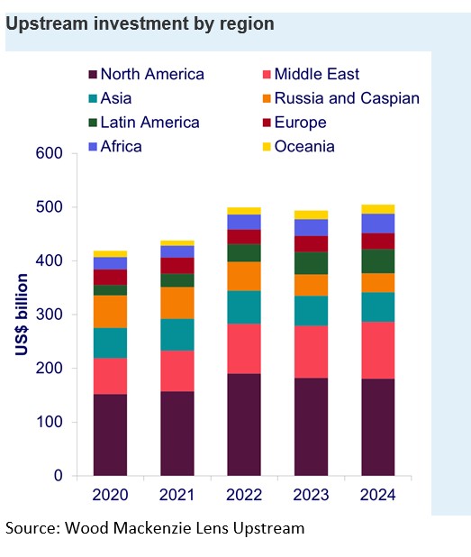 “Investment will rise in the Middle East, but fall in the US Lower 48,” said Ian Thom, Director of Upstream Research. “The new project pipeline remains healthy, with 45 projects vying to take final investment decision (FID) – a potential investment commitment of US$170 billion to develop 25.5 billion boe. Around 30 will proceed in 2024. Many of these will be deepwater discoveries, with the 10 biggest deepwater oil projects requiring US$52 billion of investment for recoverable resources of 5 billion barrels of oil.”